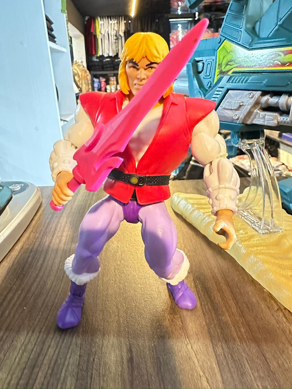 Estado: Se observa que la figura incluye su base original y piezas de la capa, aunque el arma puede requerir reparaciones en el vástago según vendedores en el mercado.